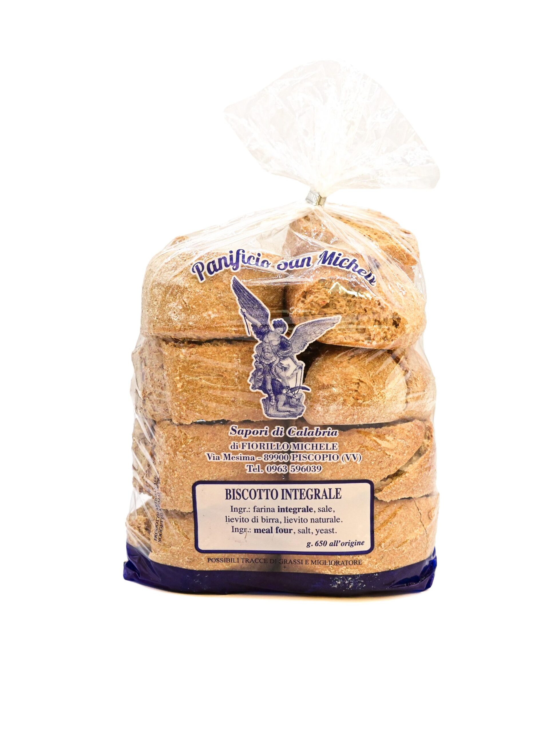 Ingredienti: farina integrale, acqua, lievito di birra, lievito naturale, sale.