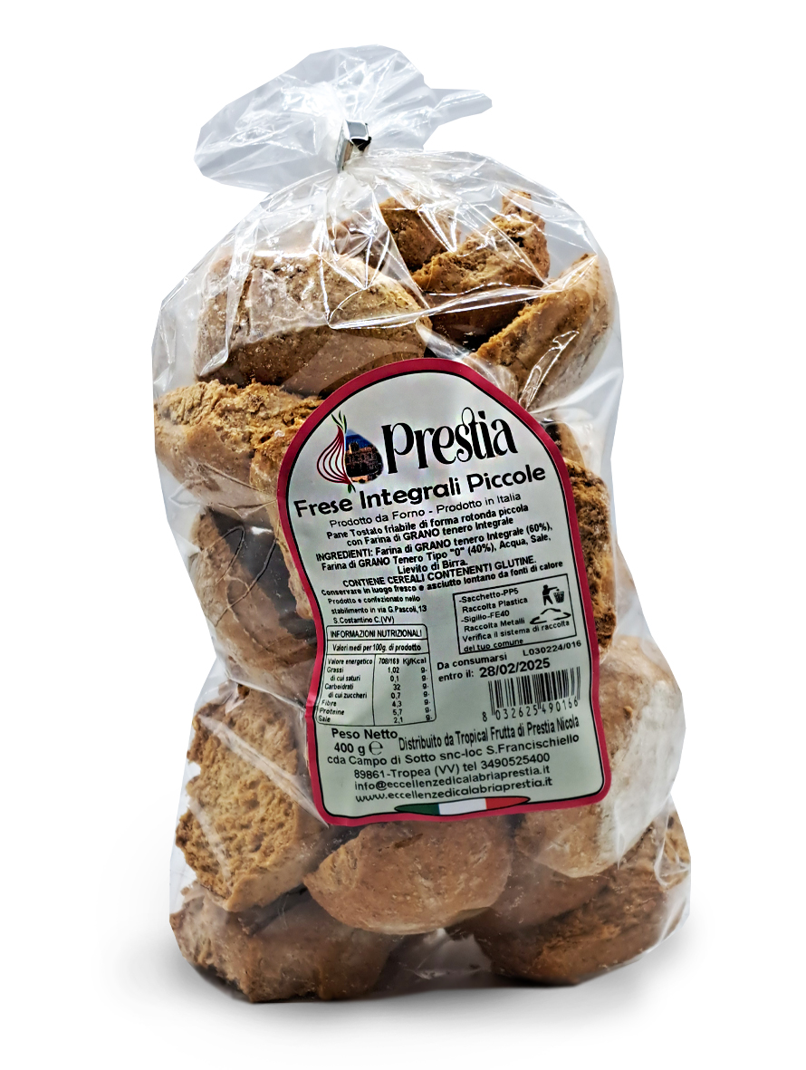 Queste frese integrali di dimensioni ridotte sono realizzate con farina integrale di alta qualità. Nonostante la loro piccola dimensione, sono ricche di fibre e nutrienti. Sono perfette da gustare come snack o da utilizzare come base per antipasti e aperitivi. La loro crosta croccante e il sapore pieno di grano le rendono irresistibili.