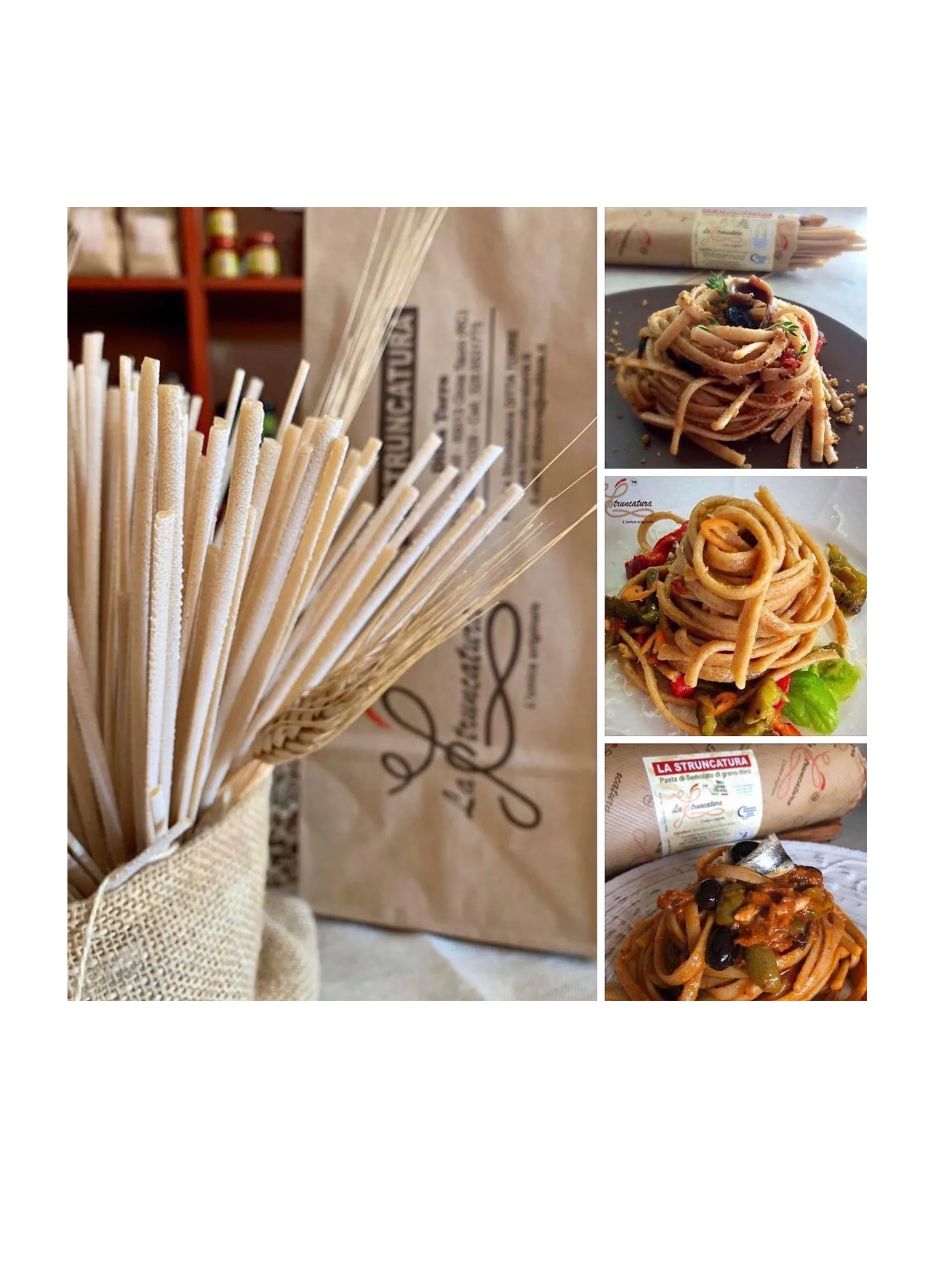 La Struncatura non è una semplice pasta integrale; è un pezzo di storia della Piana di Gioia Tauro. Caratterizzata da una consistenza incredibilmente ruvida e porosa grazie alla trafilatura al bronzo, questa pasta è progettata per trattenere i condimenti più intensi.