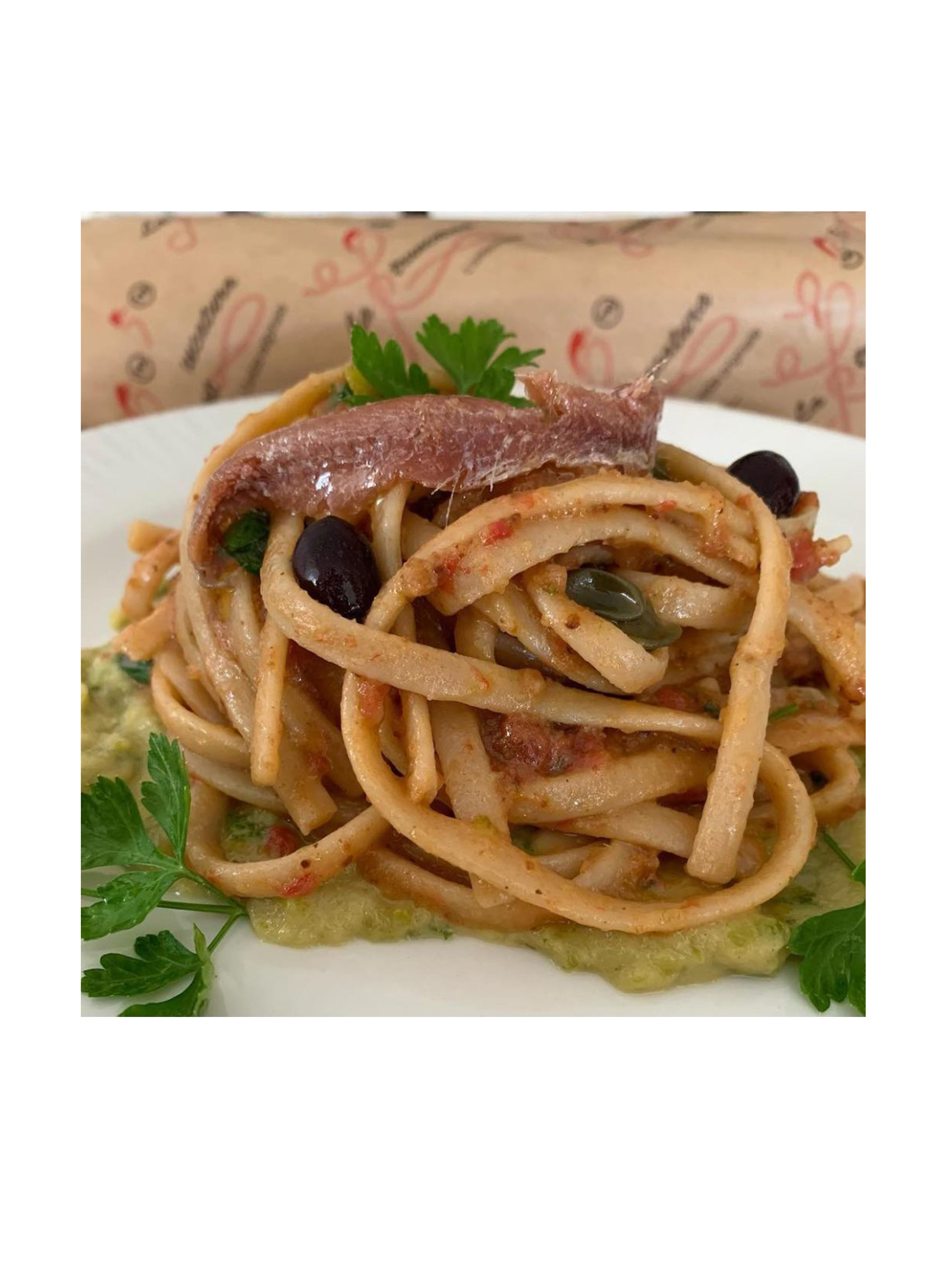 Abbinamento Ideale: La morte sua? Aglio, olio, peperoncino, alici e una generosa spolverata di mollica di pane tostata (“muddica atturrata”).