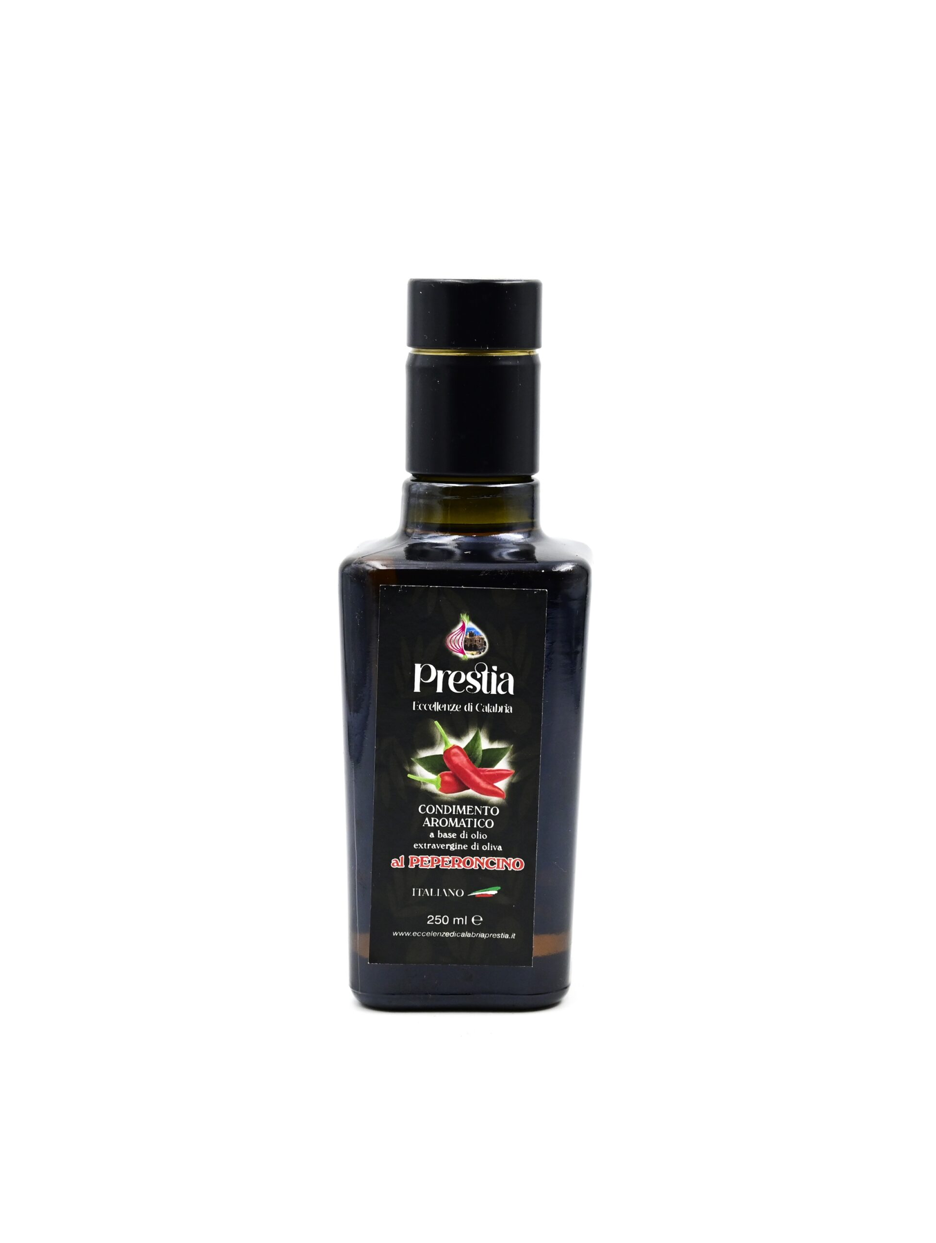Accendi i tuoi piatti con il carattere audace della Calabria. Il Condimento Aromatico al Peperoncino di Prestiia è l’unione perfetta tra un Olio Extravergine di Oliva di altissima qualità e il re indiscusso della gastronomia calabrese: il peperoncino.