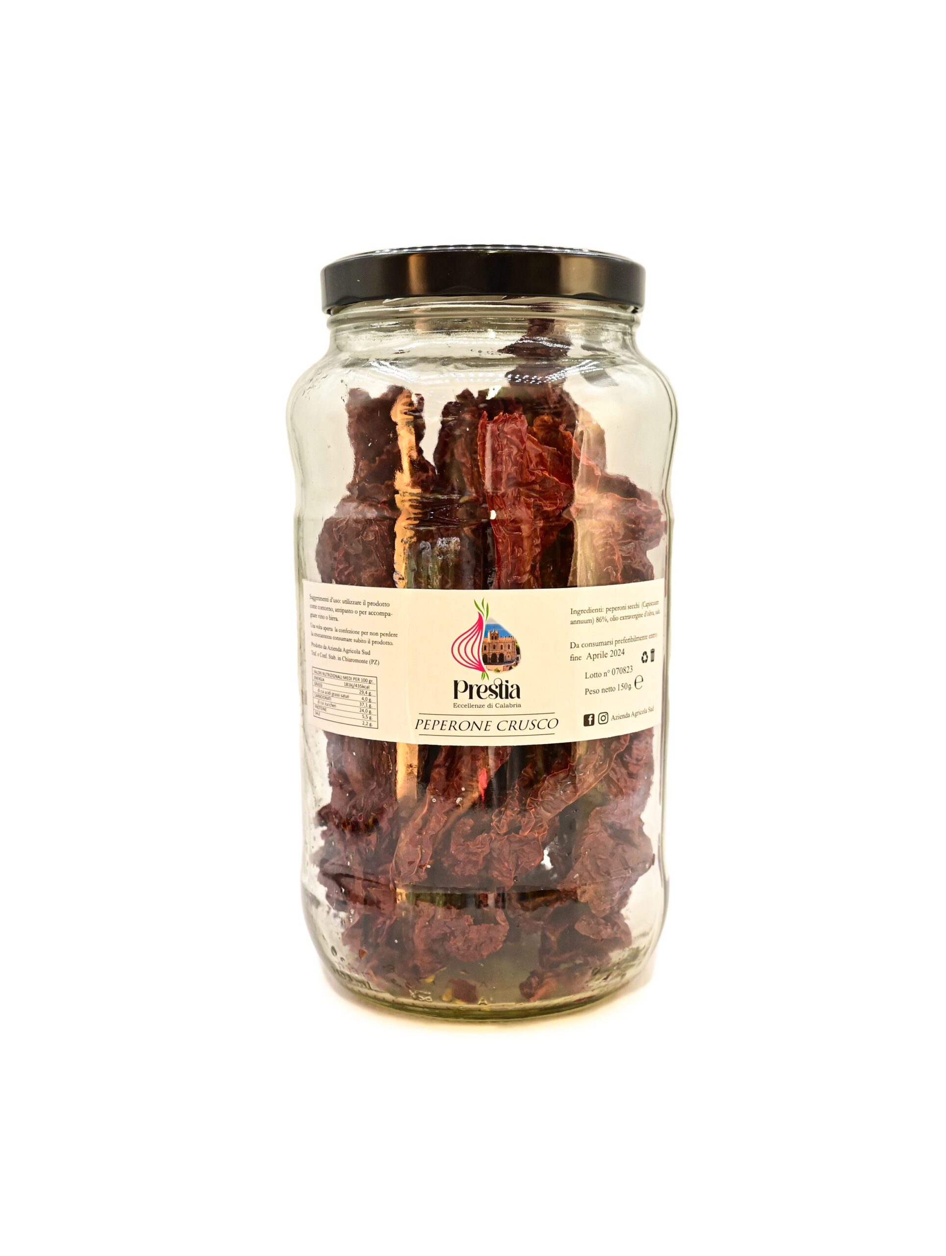 Ingredienti: peperoni secchi ( Capiscuum annuum) 86%, olio extravergine d’oliva, sale.