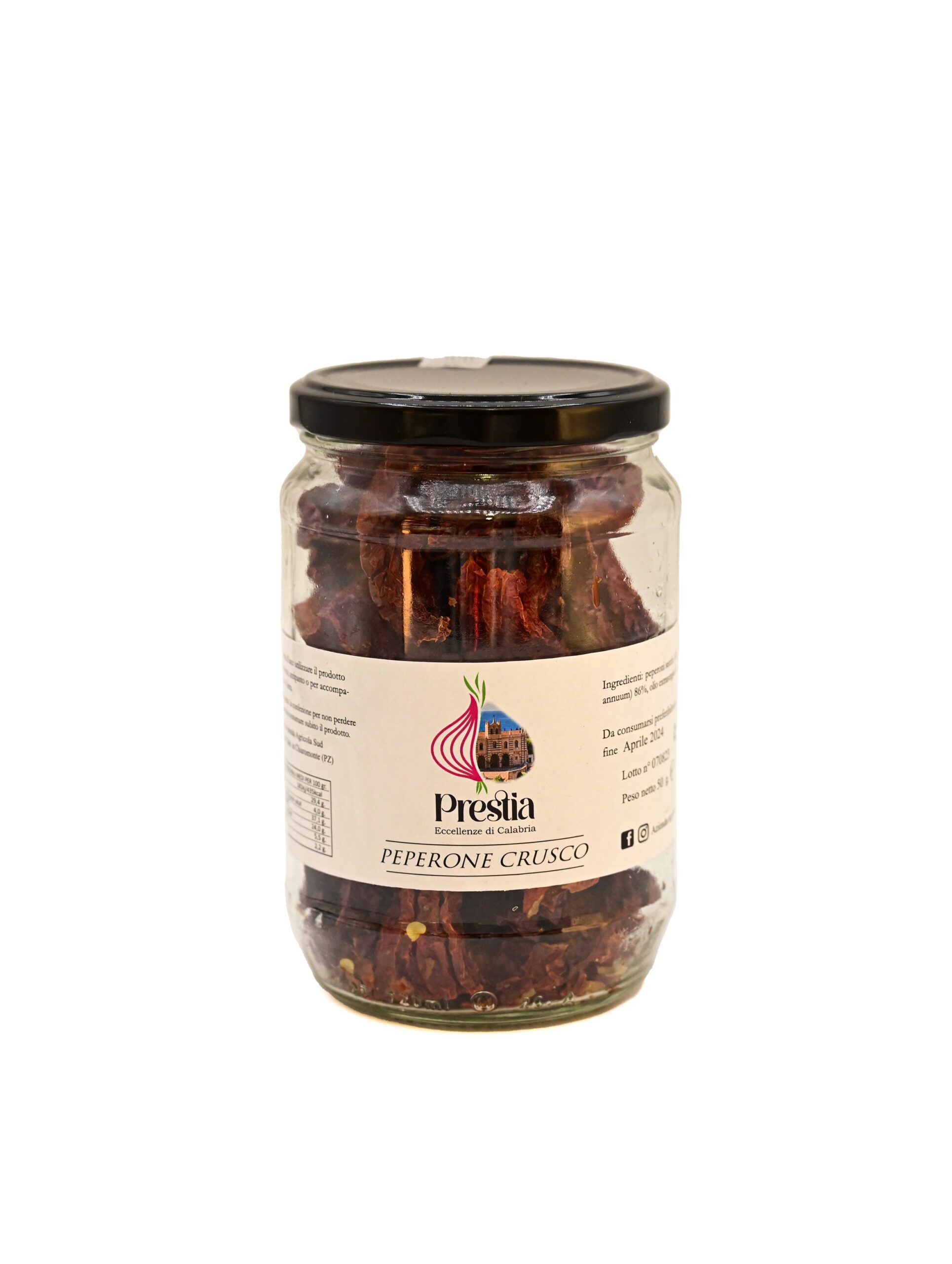 I peperoni cruschi, sono una particolare qualità di peperoni dolci a basso contenuto d’acqua. Una volta essiccati, i peperoni vengono “scottati” in olio per pochi secondi: l’escursione termica fa sì che l’ortaggio diventi “crusco”, cioè croccante.